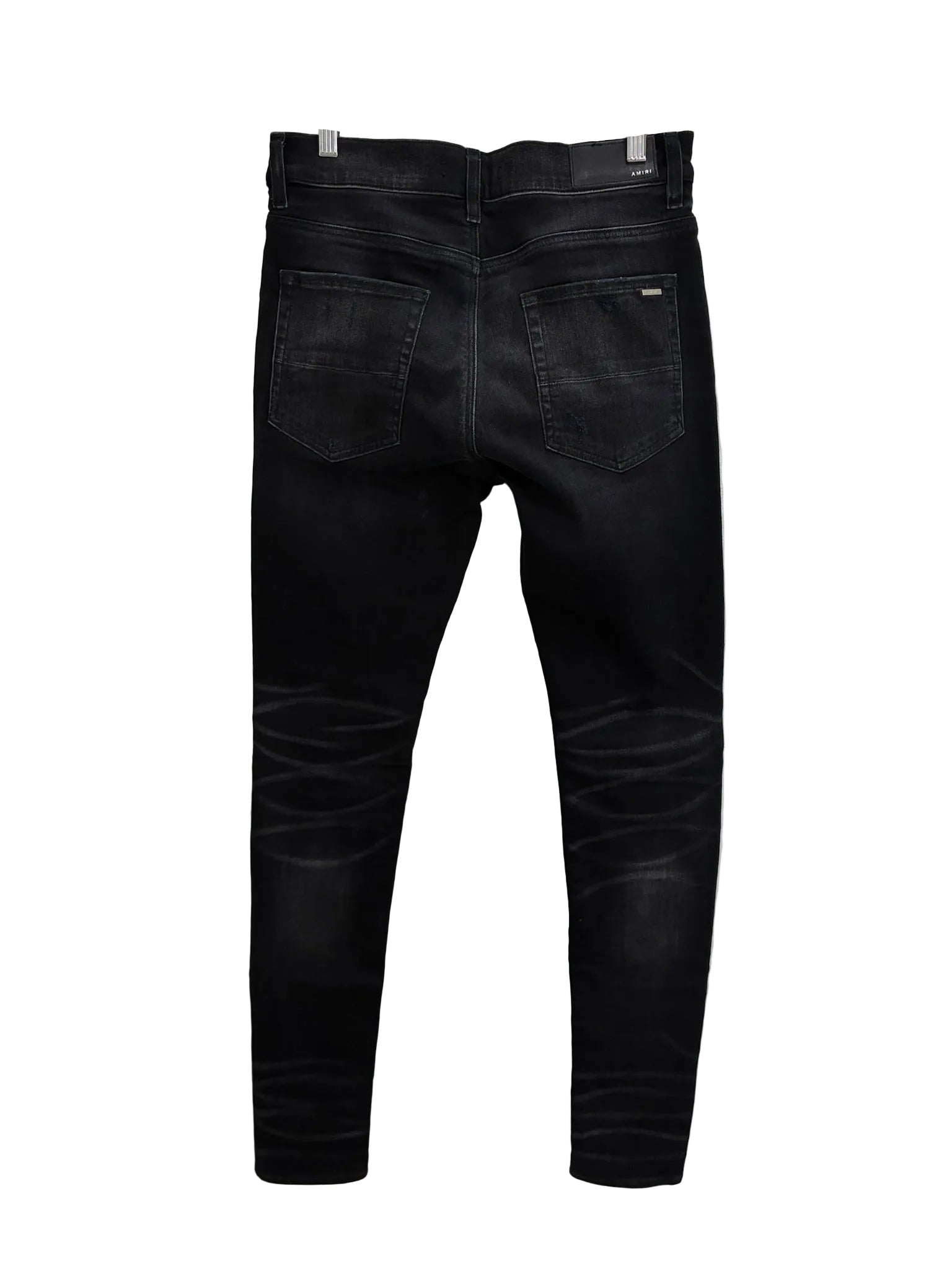 Sleek and edgy AMIRI skinny jeans crafted from premium stretch denim, featuring the brand’s signature distressed detailing with bold contrast accents. This pair delivers a modern rock-inspired look that AMIRI is known for.