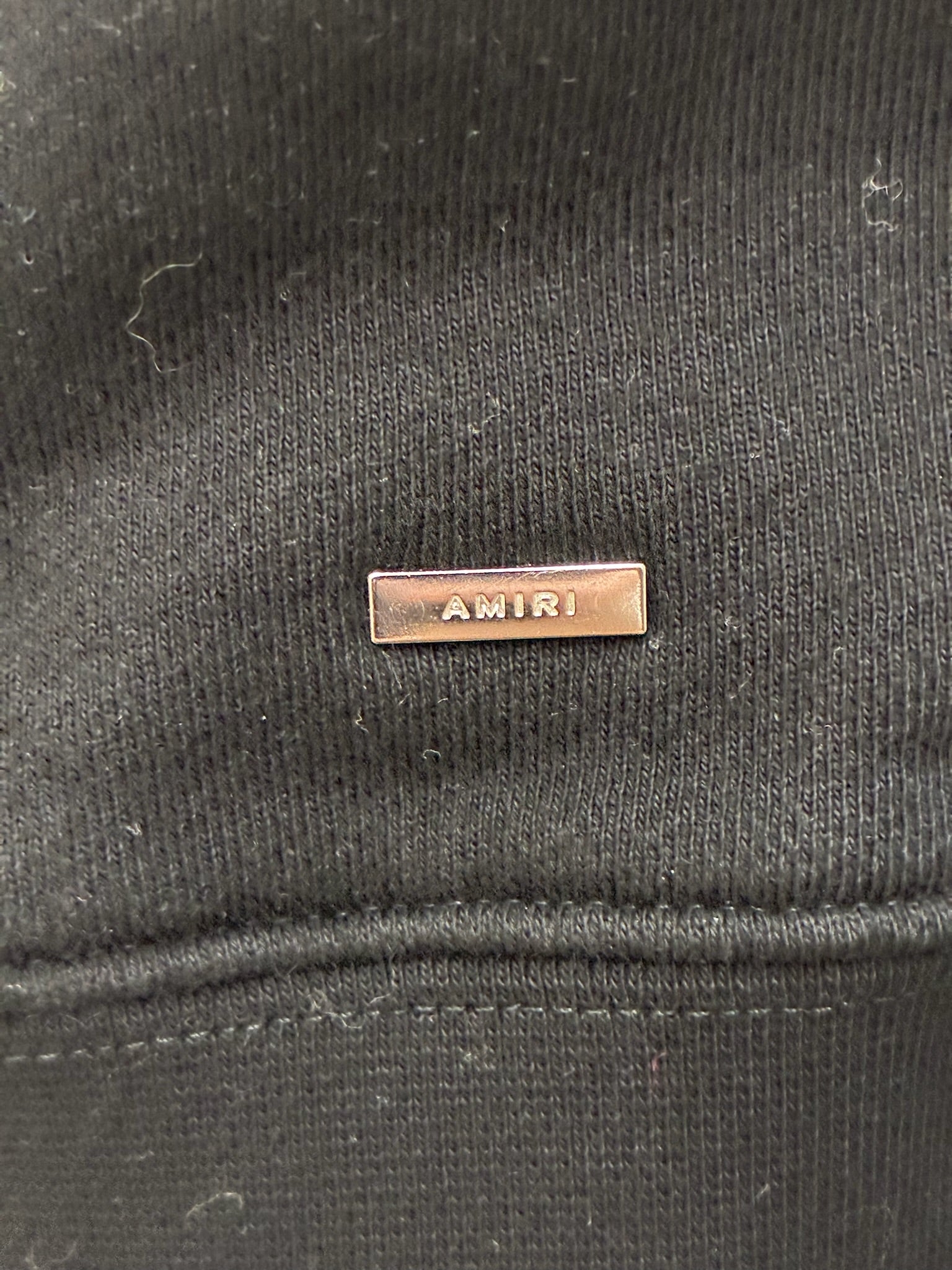 • Large AMIRI logo in bold collegiate lettering on the chest