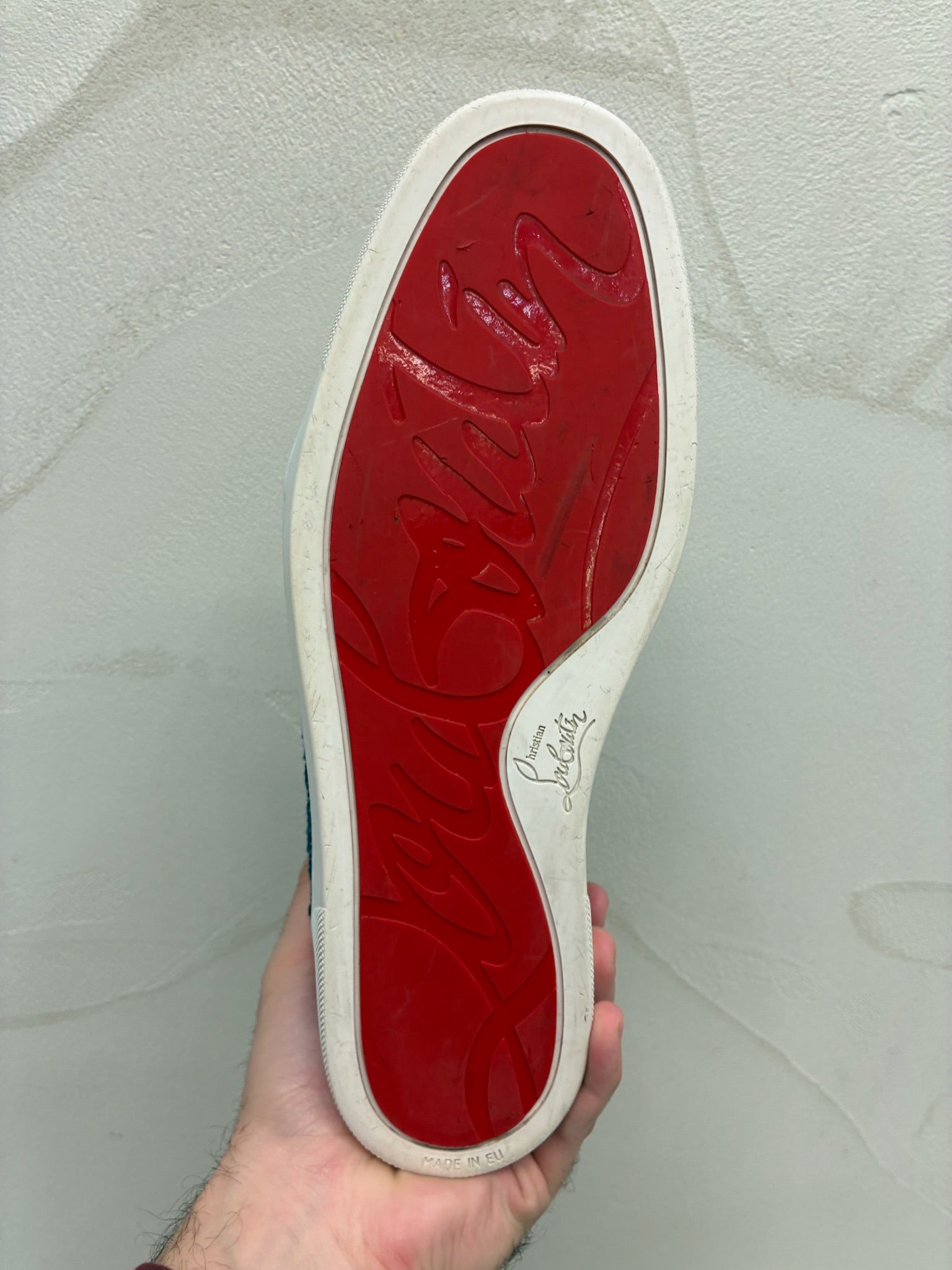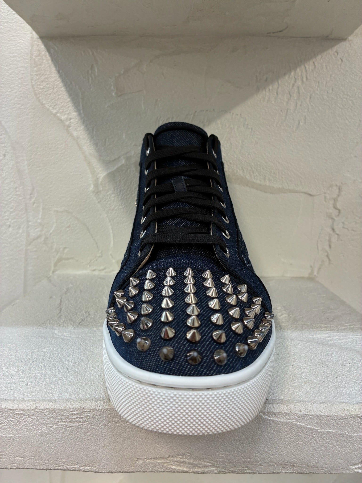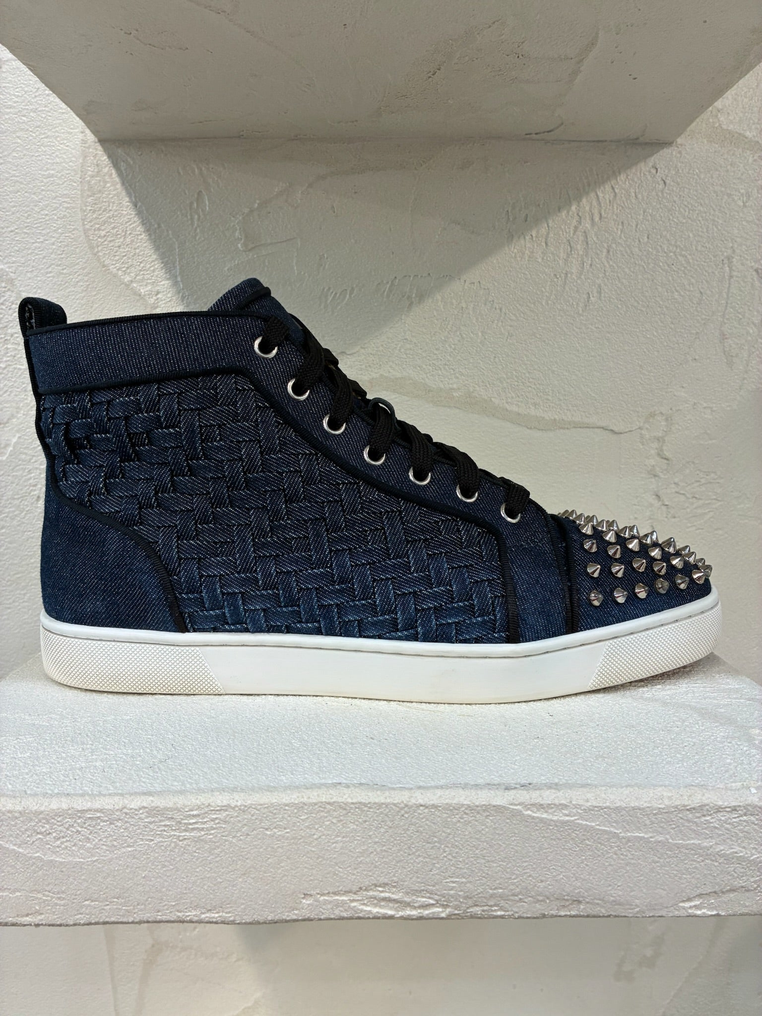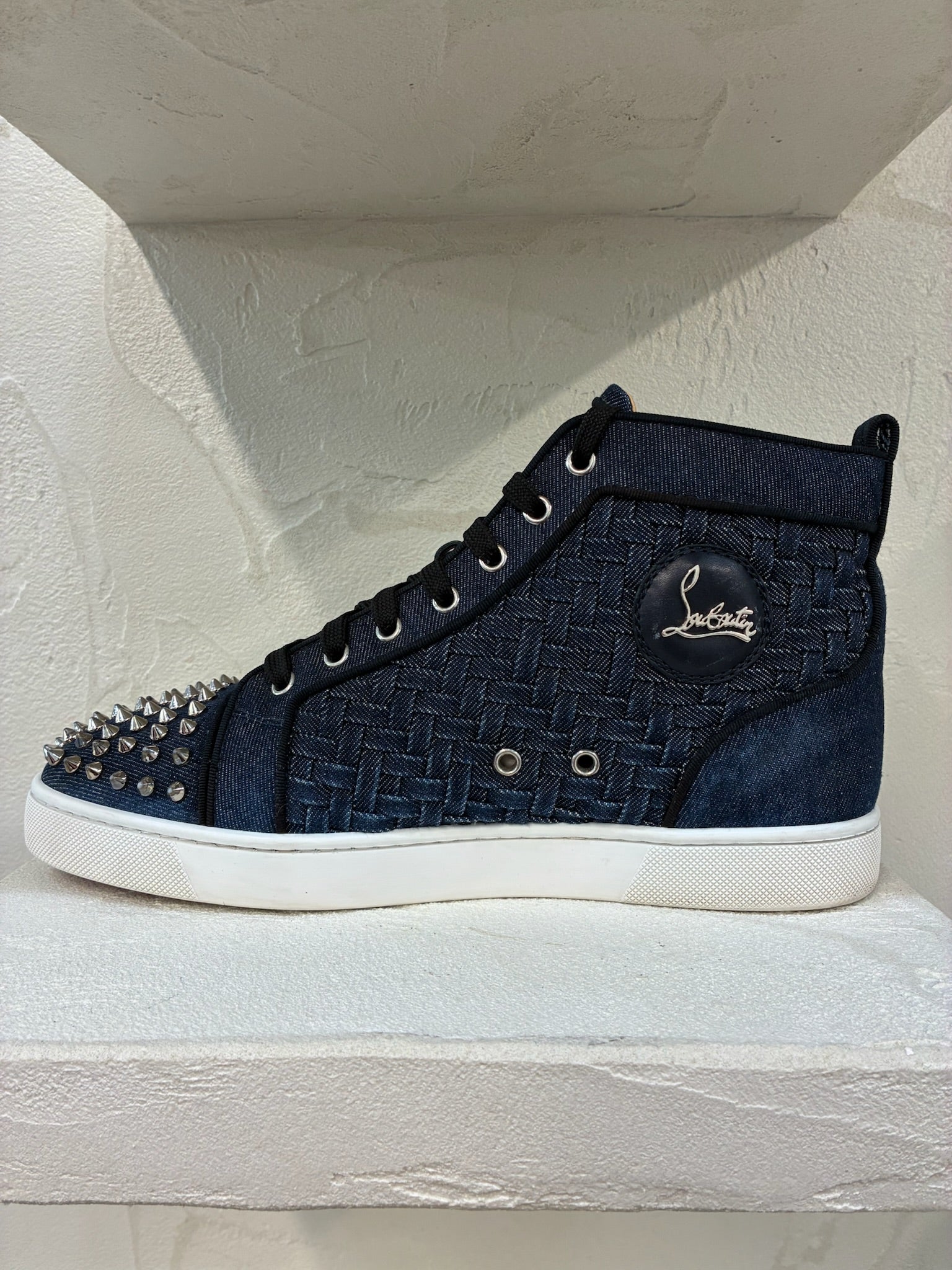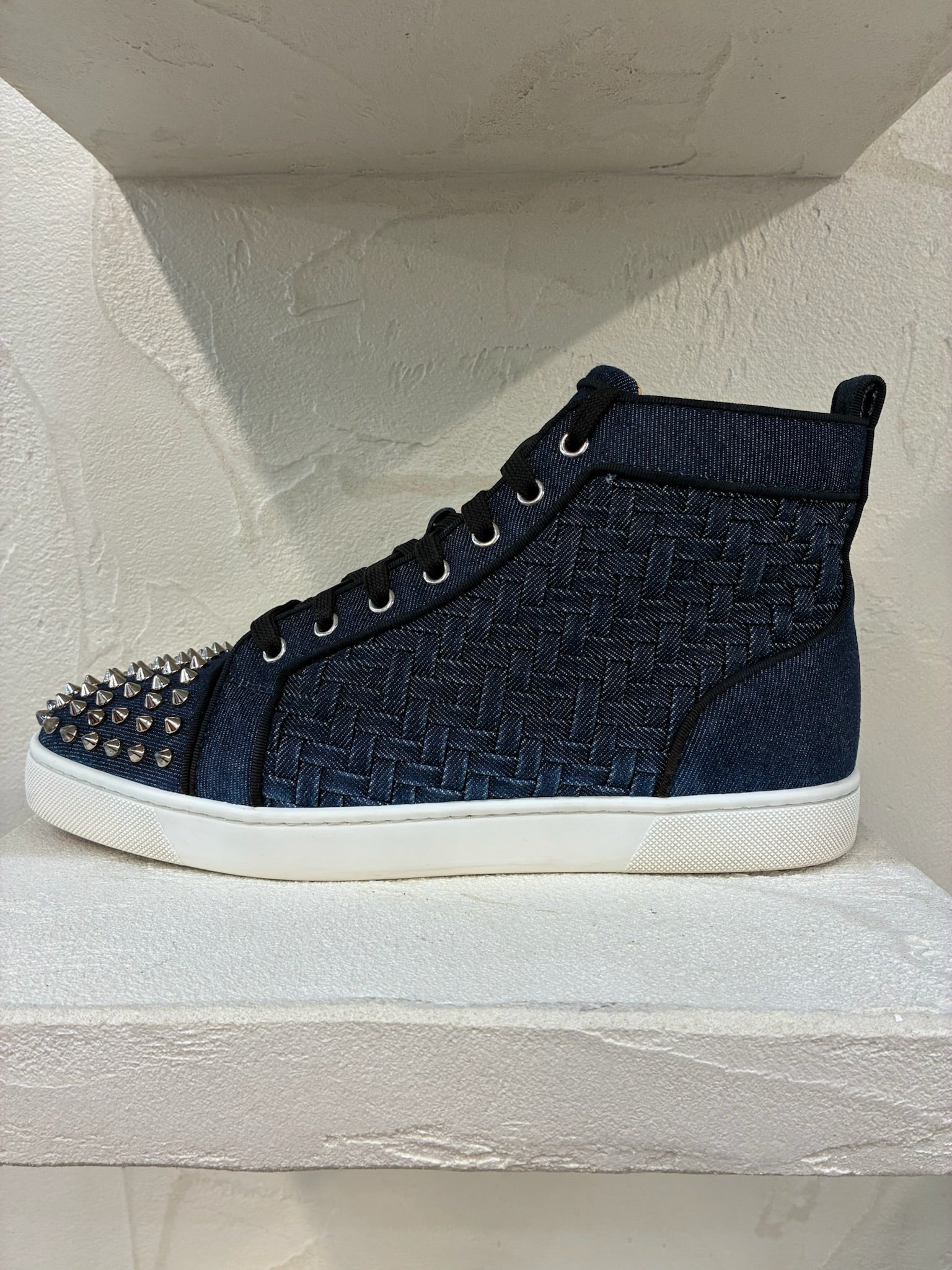 Christian Louboutin Orlato Denim Weave Spiked High-Top Sneaker – Size 43 (US 10) – Excellent Condition