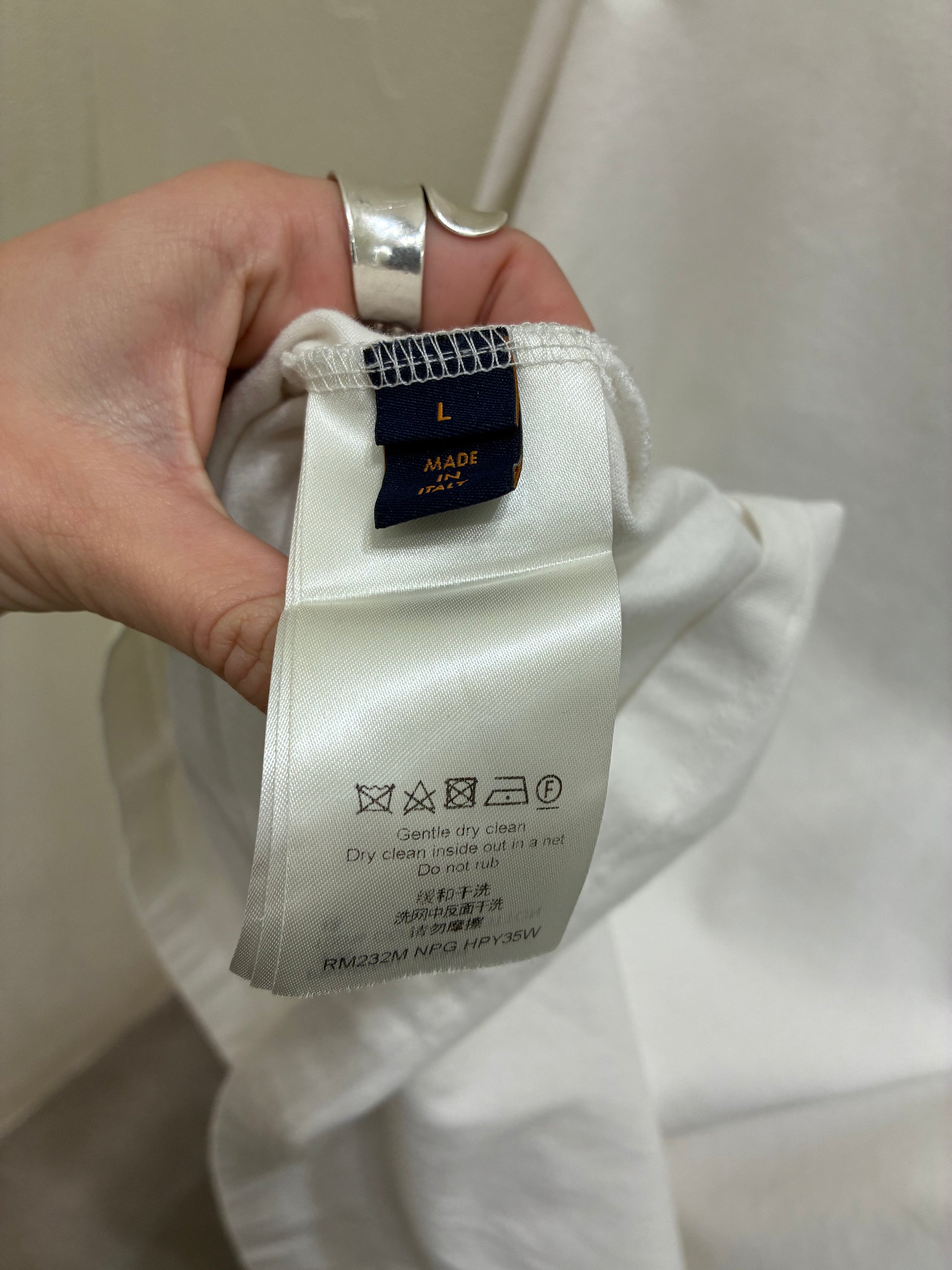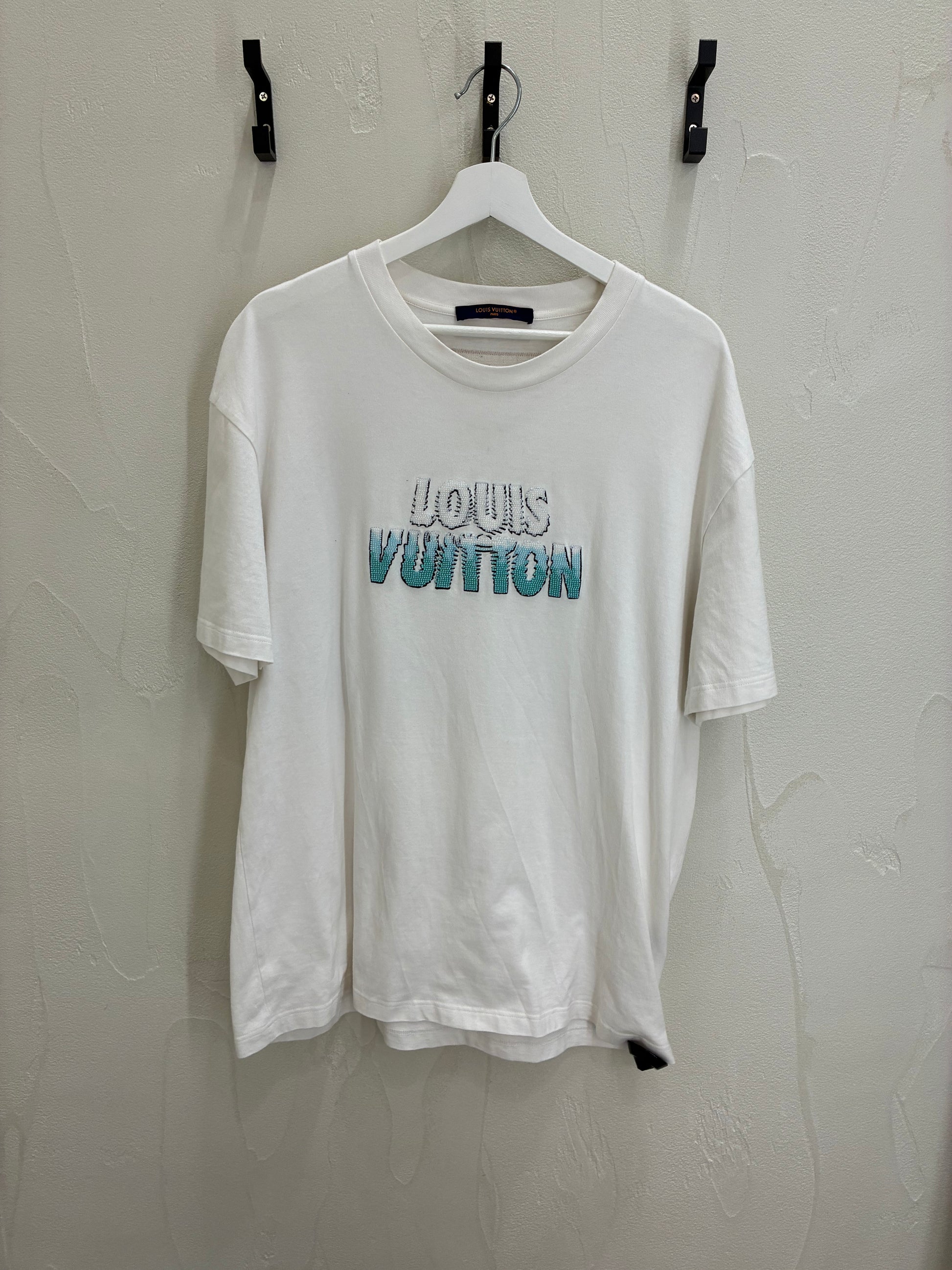 • Details: Hand-embroidered bead Louis Vuitton logo at chest, crew neckline, short sleeves, straight hem, tonal stitching