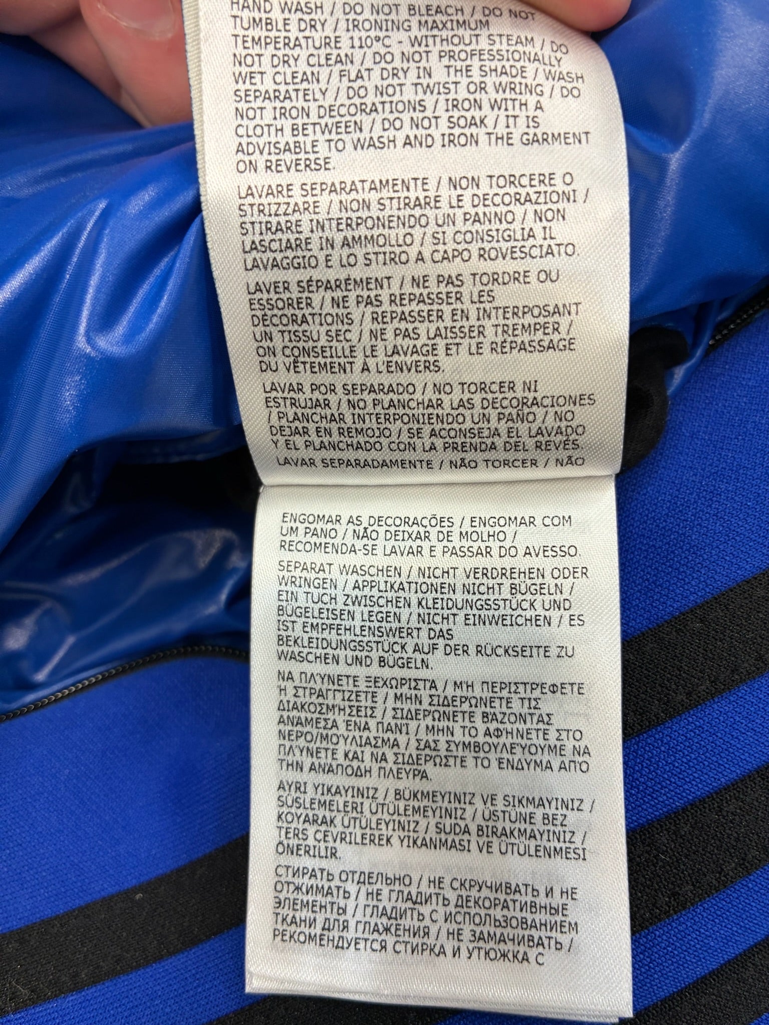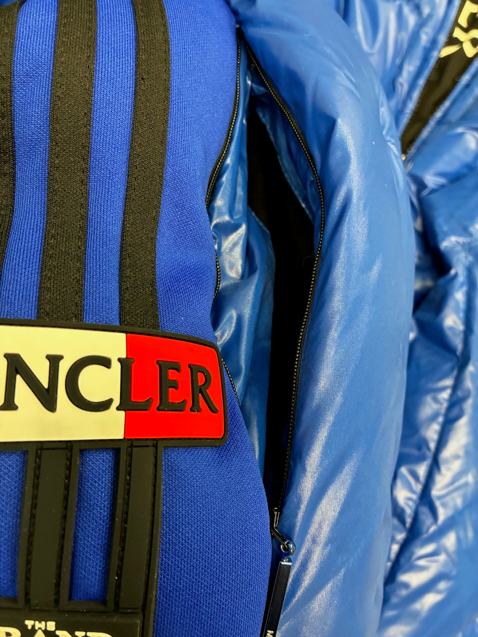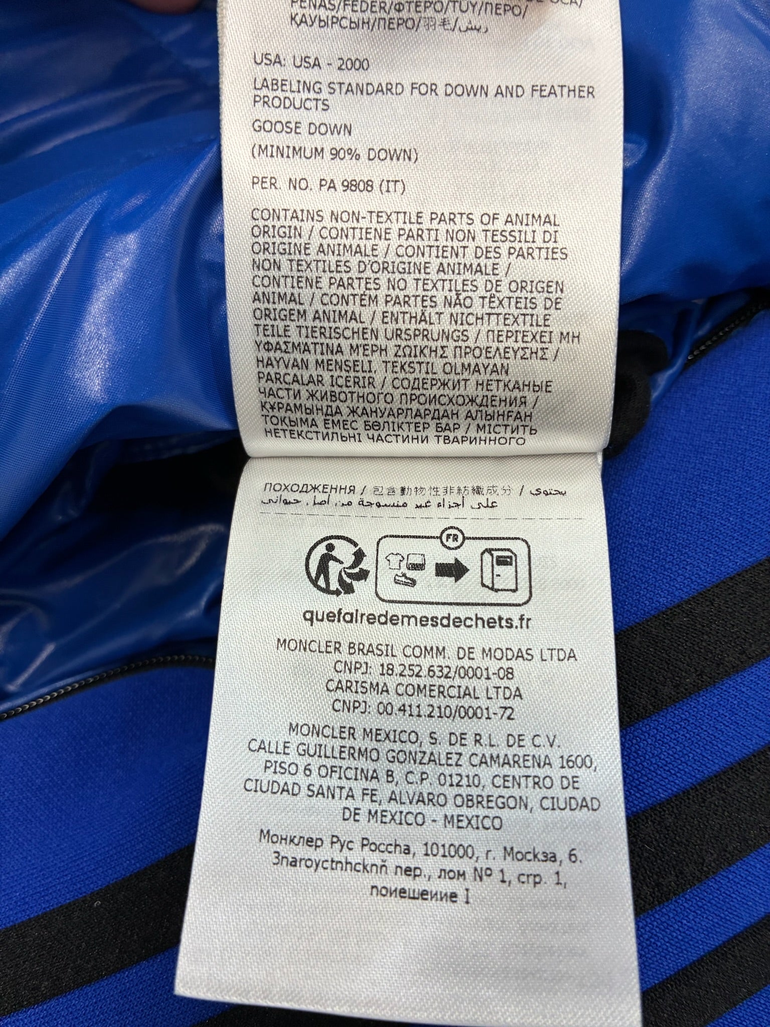 A standout piece from the highly anticipated Moncler x Adidas Originals collaboration, this puffer jacket perfectly fuses Moncler’s alpine luxury with Adidas’ iconic sportswear heritage. Crafted in a striking cobalt blue, this jacket exemplifies premium performance design, fashion innovation, and comfort.