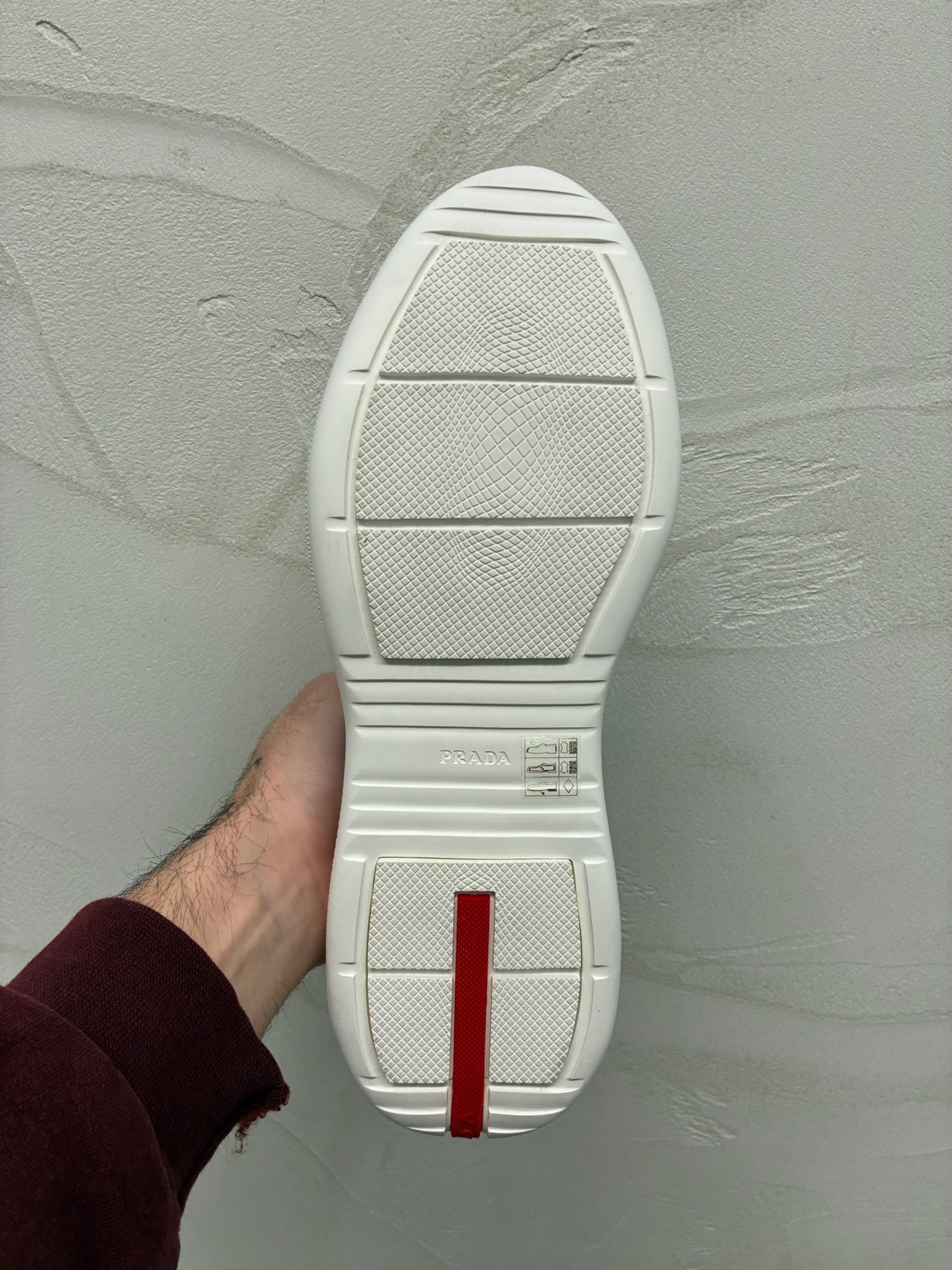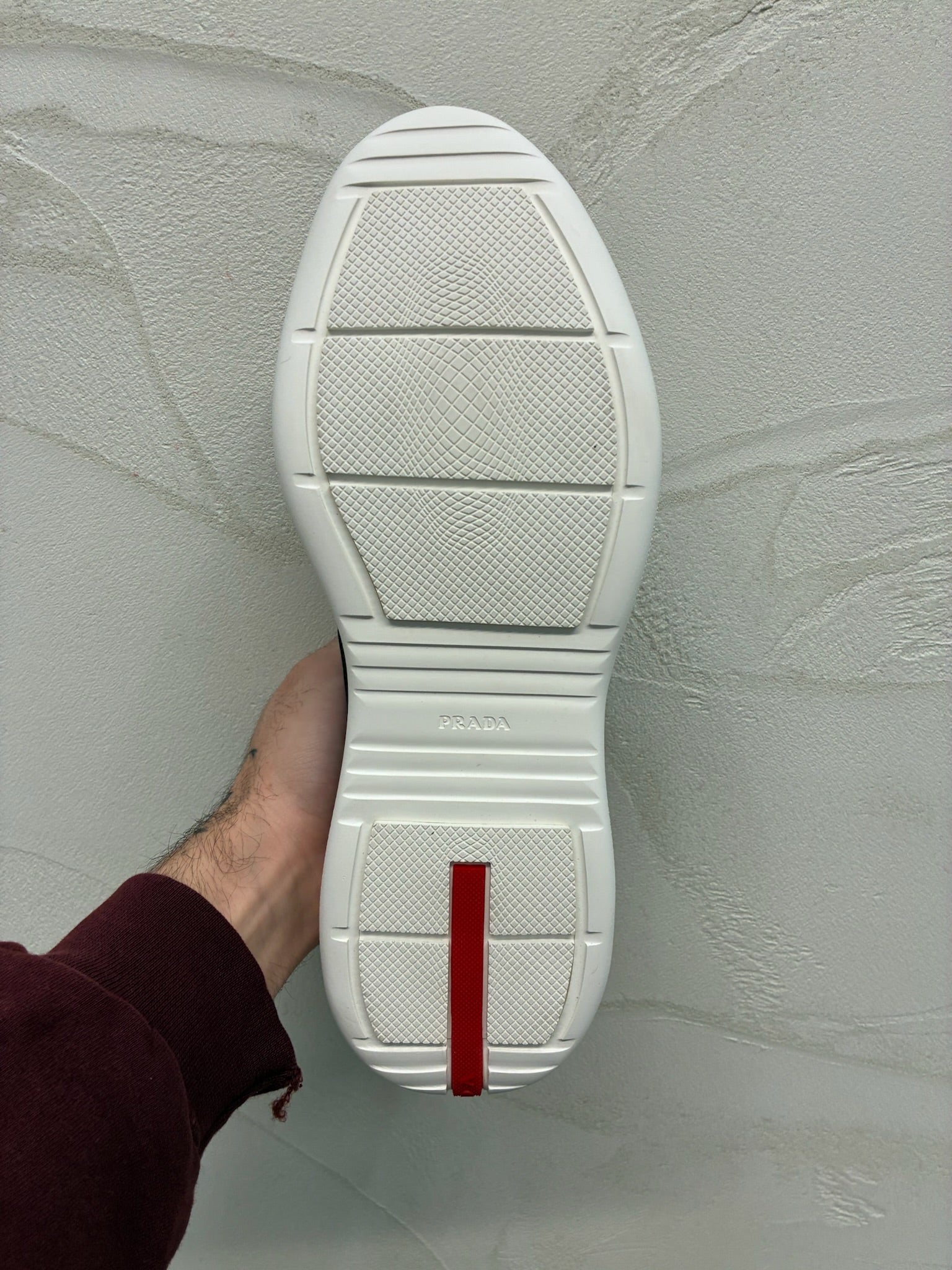 • Signature Prada red tongue tab